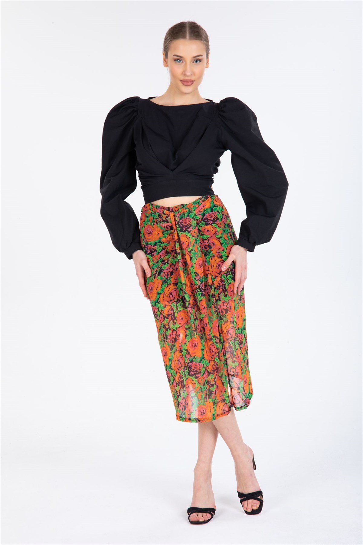 ORAJ ÇİCEK DESENLİ ŞİFON ETEK